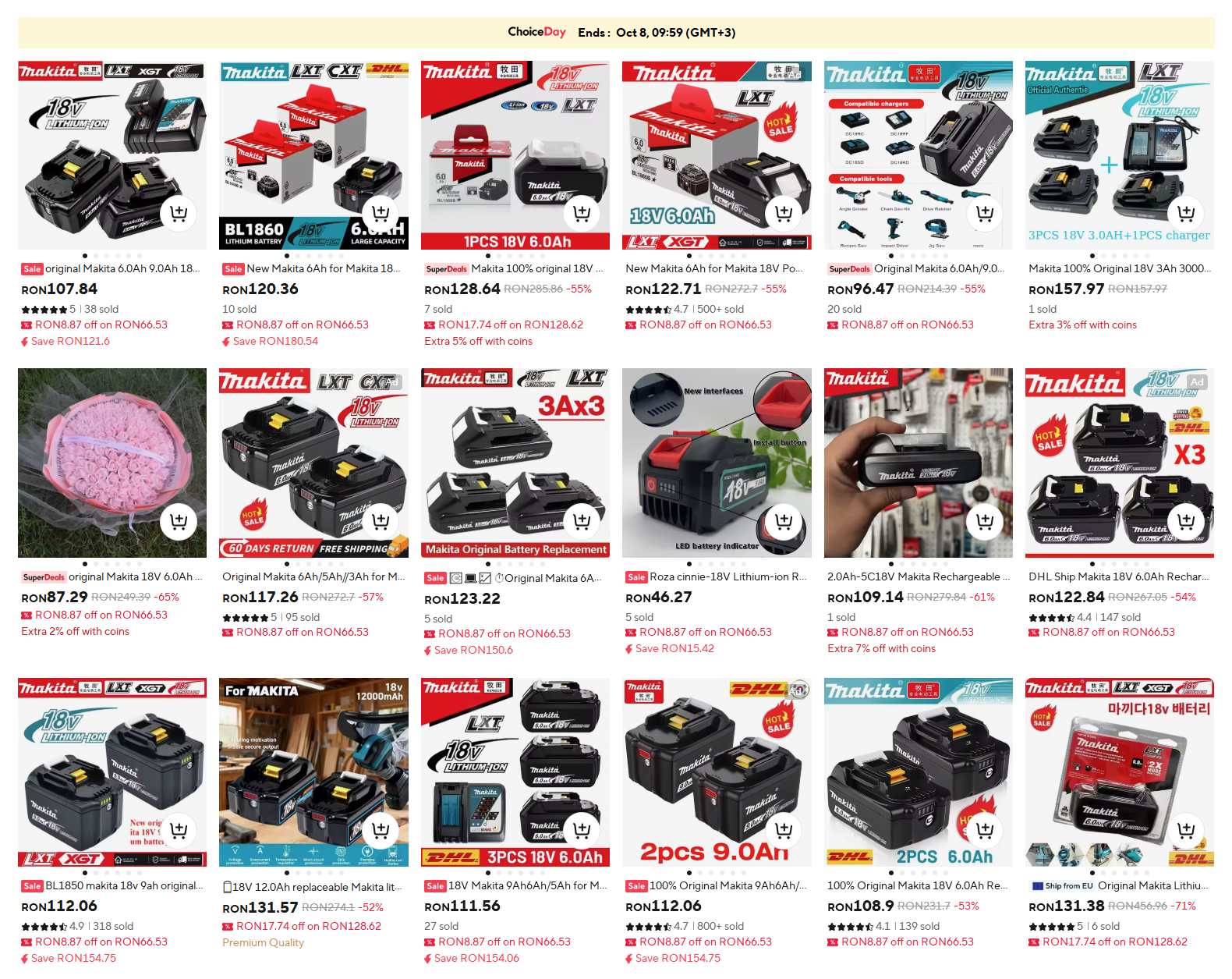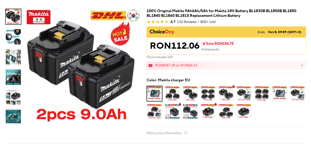 Un comentator zice că se găsesc bateriile astea și pe Aliexpress, așa că am dat o tură pe acolo, și da, e plin. Și pe eMAG, desigur.