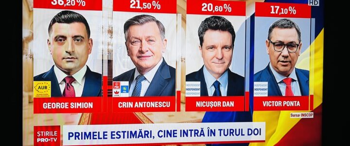 Rezultatele dimineață (de aici): Vreau să salvez filmările cu Lasconi și Antonescu susținând Nicușor. Important acum este pe cine susține Nicușor la Primărie. Ciolacu la covrigărie! Ponta la Serbia! Teoria mea: băieții din spatele lui Simion s-au speriat că băiatul cu frizura MAI ar putea ajunge președinte, așa că l-au ascuns. Simion e bun pentru […]