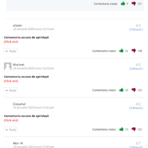 Ați văzut că sunt momente în care apar zeci de voturi negative la comentarii. Este foarte neplăcut pentru voi mai ales, că ăsta este și scopul, cititorul să vadă că al lui comentariu are sute de downvotes și să se demoralizeze și să nu mai comenteze.