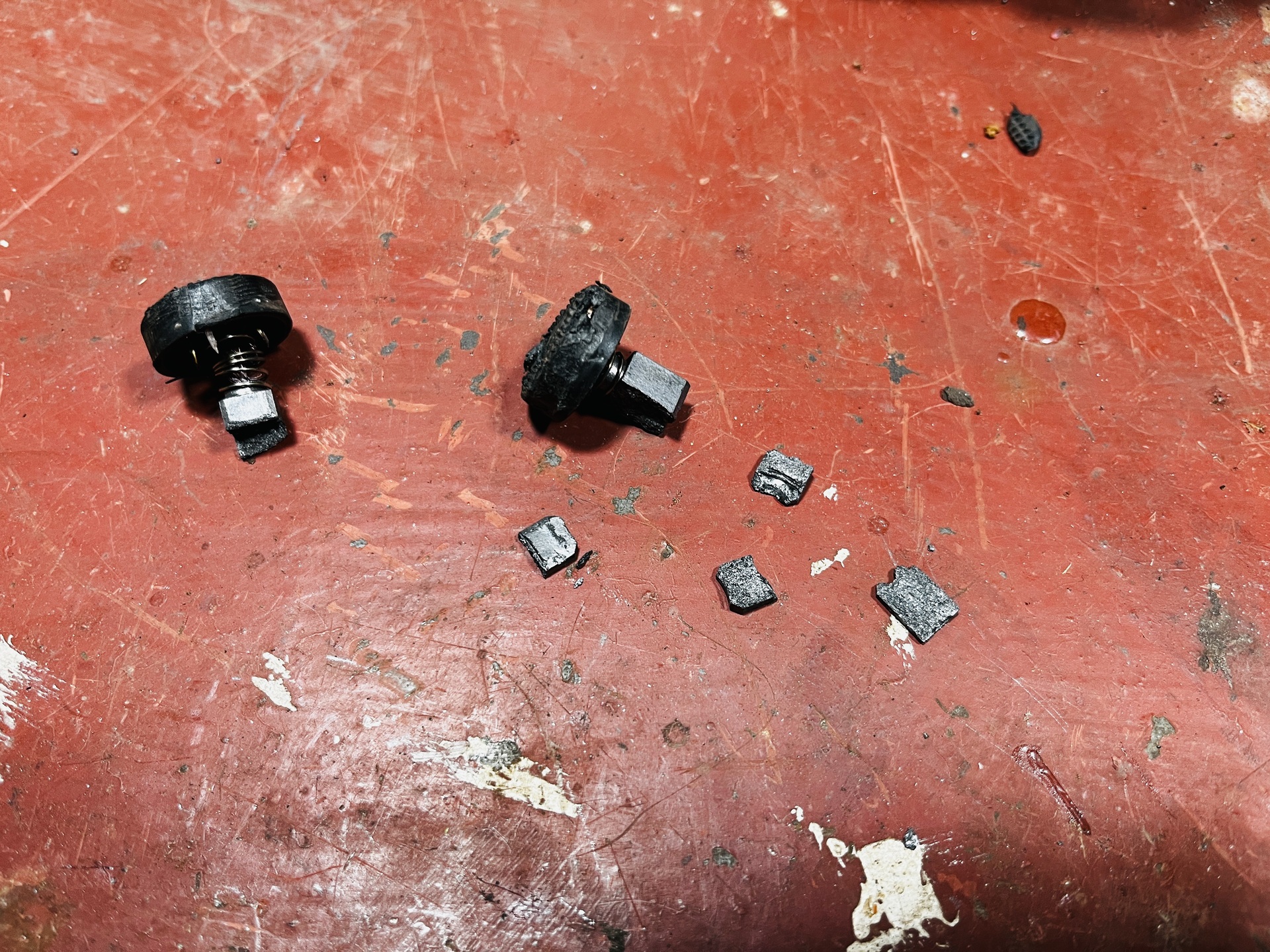 Așa că l-am desfăcut și am descoperit că, atunci când se încinge, periile se lipesc de niște căpăcele care sunt înșurubate, și nu mai merg scoase decât cu forța.