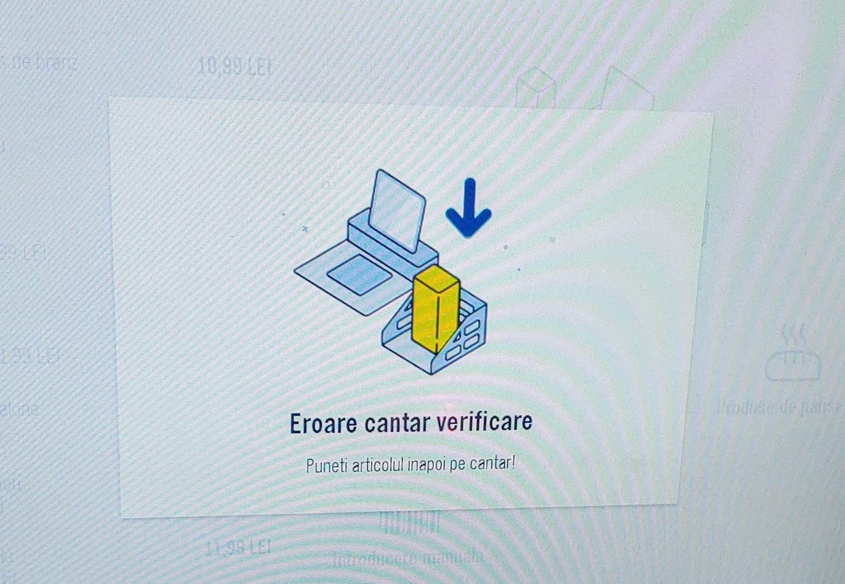 Iar pe lângă situația excepțională de mai sus, aproape de fiecare dată când am ajuns la casele alea self-checkout din Lidl, a fost o problemă cu cântarul respectiv, mereu se găsește un produs care are greutatea incorectă introdusă în sistem și stai ca prostul și te uiti pe ecran că n-ai ce să faci.