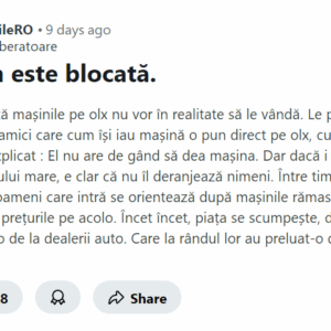 • la pretul SH contribuie foarte mult si pretul aberant al masinilor noi, termene halucinante de livrare in unele cazuri si dotari absolut jenante la cele „chele” in unele cazuri …