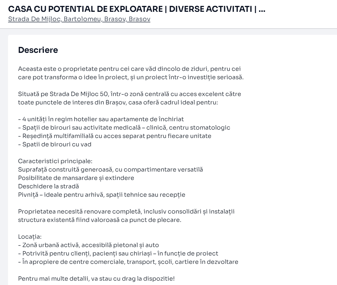 Schema aia cu „proprietății revenindu-i…” poate trece neobservată, dar realitatea rămâne: agenții imobiliari încearcă să ascundă că în curte sunt mai mulți proprietari. Pentru că poate ai timp de pierdut cu telefoane și vizite. Că poate te răzgândești sau poate îți place atât de mult că uiți că tu credeai că vii să vezi 400mp de curte și acolo sunteți 4 proprietari de fapt (cum e aia de pe De Mijloc).