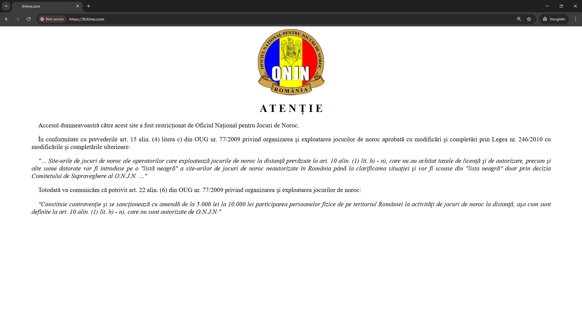 @Sabotor au si domeniul lotterytime.ro care mergea suspendat, macar asa nu mai facea redirect catre .com dar nu are ONJN autoritatea asta, ei doar fac dns hijack in toate cazurile unde nu a fost platita licenta de operator