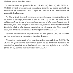 Da … e una din structurile mafiote care de fapt distrug tara asta, insa isi vad linistiti de „treaba”, adica de a proteja operatorii de jocuri de noroc, cei pe care ar trebui de fapt sa ii reglementeze. Dar lucreaza linistiti in folosul Sperbet & co. pentru ca nu ii deranjeaza nimeni, noi suntem ocupati cu muie psd si hai nicusor si prostii din astea, ca atat ne duce mintea, cand de fapt poate sa vina si Iisus Hristos sa conduca tara, nu are ce sa faca daca nu sunt starpite structurile astea pe care le ignoram toti cu gratie. Eu vreau proteste anti onjn, proteste sa nu mai avem 50 de milioane de prefecti, nu proteste ca jos dragnea, ca oile.
