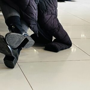 Și mi-am scos, ca niciodată, și adidașii, și mi-a desfăcut și geanta, și m-a pus și la scannerul ăla cu urme de tălpi și mi-a dat și cu hârtiuță pe mâini și pe geantă.