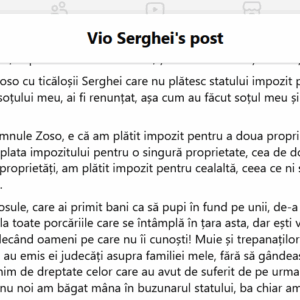 Doamna Vio (bănuiesc Viorica) Serghei mai are chestii de spus, pentru că n-a fost bine înțeleasă anterior.