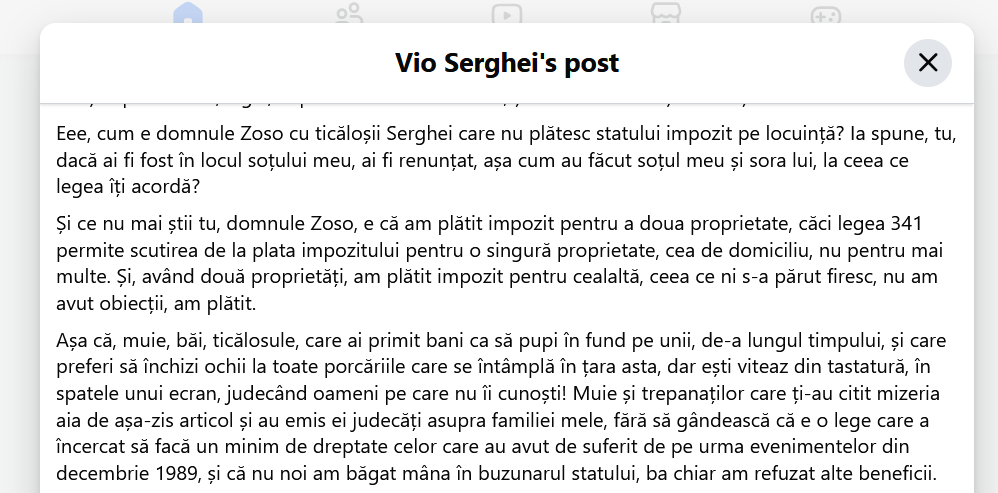 Ce suprafață are casa care valorează 400.000€ în Constanța? Câte generații locuiesc în ea? Cum poți să fii suveranist și să votezi cu unul ca Georgescu sau Simion, care amândoi sunt ai sistemului care i-a omorât nici măcar tatăl, ci socrul?