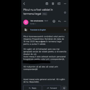Persoane din diaspora care au votat prin corespondență au primit azi următorul mail.