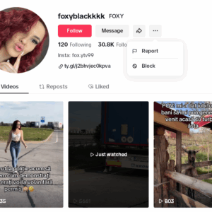 Nu știu ce pot face să scap de clipurile alea „de la plajă”, niște mizerii filmate pe ascuns. Blochez un canal, peste câteva zile îmi apar alte 12. La fel și cu tipa asta, face conținutul ăla „amuzant” de tipă de pe OnlyFans care încearcă să atragă clienți. Block ei, sunt alte conturi care îi fură clipurile. Mai sunt câteva care fac asta, dar la ea e ceva, nene, că îmi apare la câteva săptămâni insistent.