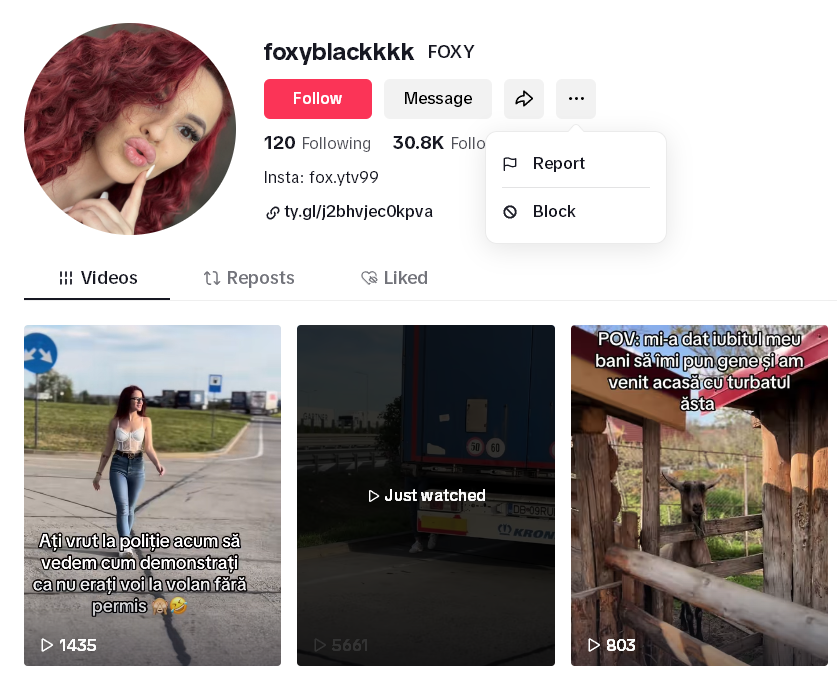 Nu știu ce pot face să scap de clipurile alea „de la plajă”, niște mizerii filmate pe ascuns. Blochez un canal, peste câteva zile îmi apar alte 12. La fel și cu tipa asta, face conținutul ăla „amuzant” de tipă de pe OnlyFans care încearcă să atragă clienți. Block ei, sunt alte conturi care îi fură clipurile. Mai sunt câteva care fac asta, dar la ea e ceva, nene, că îmi apare la câteva săptămâni insistent.